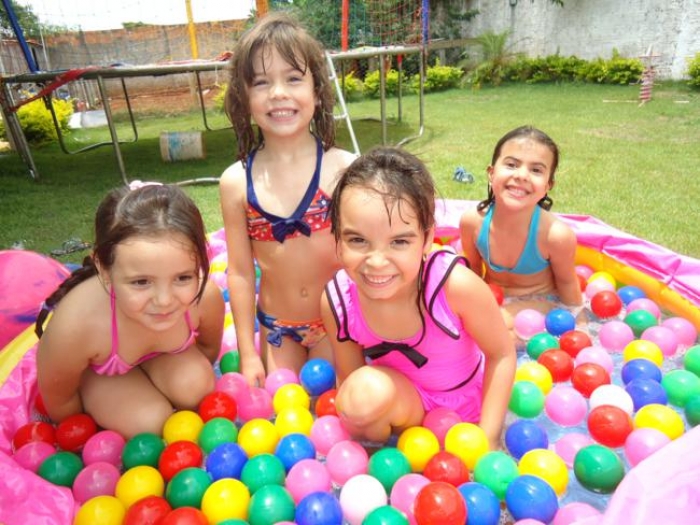 Os alunos brincaram na piscina de bolinha de sabão, cama elástica e participaram de várias atividades.