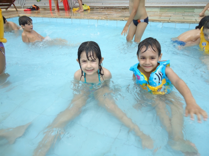 Na última sexta-feira dia 23/02/2013, os alunos do Pré III A da Prof .ª Regina e do Pré III B da Prof.ª Fabiane, participaram de atividades de lazer na piscina onde brincaram e se divertiram muito.