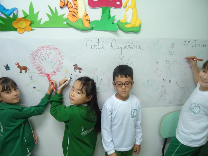 Trabalhando á Pré História em Arte com os alunos do 2º Ano A e B.