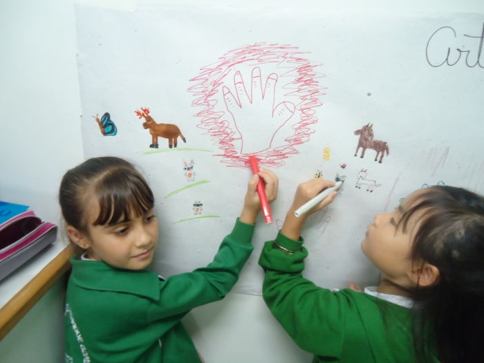 Na faixa etária desses alunos, o desenho é uma importante forma, de expressão. Portanto resolvemos criar um ambiente descontraído para a realização dessa atividade, voltados no tempo com os próprios alunos desenhando nas paredes.