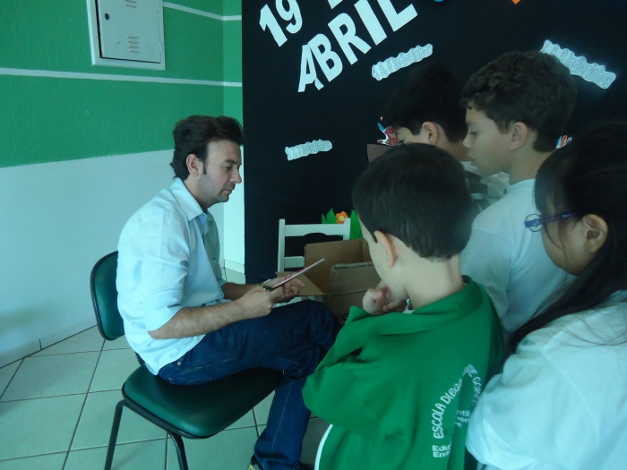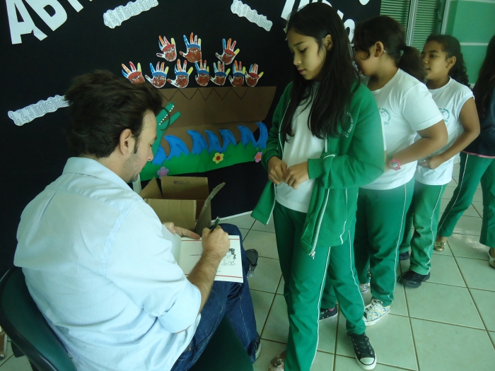 Realizou um trabalho de exposição das obras, contou histórias, interagiu com as crianças, deixou sua mensagem de otimisno sobre a leitura, segundo o autor, quanto mais cedo entrarmos no mundo da leitura mais cedo adquirimos conhecimento, e esse levaremos para vida toda.