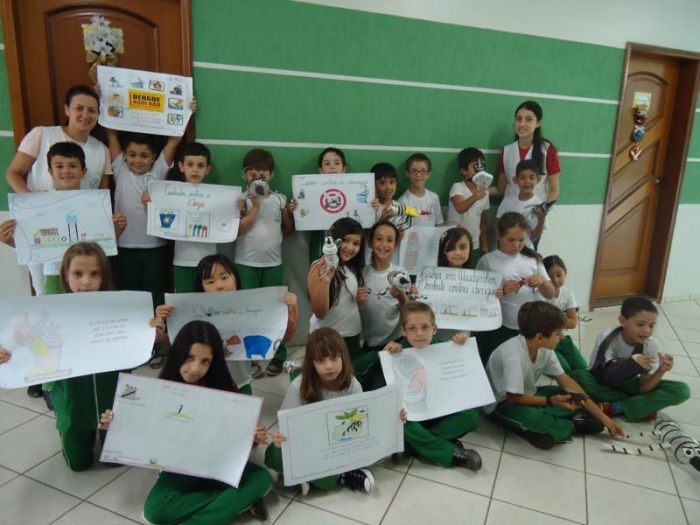 Os alunos do 2º Ano A e 2º Ano B estão aprendendo a importância de alguns cuidados que devemos ter para evitar doenças como a dengue, cuidados como guardar garrafas vazias com a boca para baixo, encher os pratinhos dos vasos com areia, manter sempre a caixa d´água fechada, além de não deixar fora de casa, ao ir livre, pneus velhos e vasilhas onde a água da chuva fique acumulada, tudo isso para acabar com o mosquito transmissor dessa doença, o Aedes Algypti que se reproduz em água limpa e parada.
