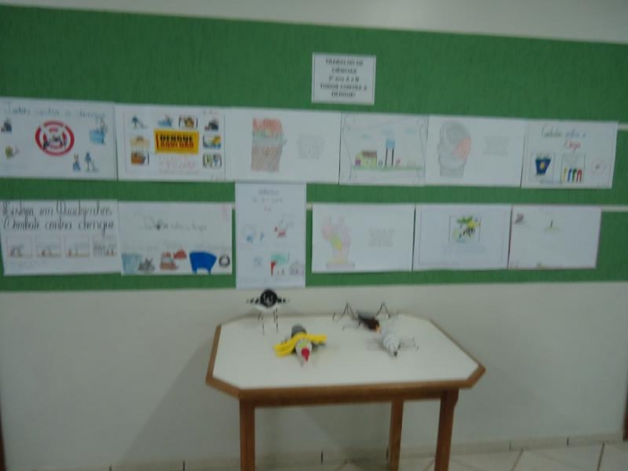 Com isso percebemos a importância de conscientizar os demais alunos, professores e toda comunidade escolar a também terem esses cuidados. Os alunos produziram cartazes informativos e confeccionaram mosquitos da dengue com materiais recicláveis. Todos os trabalhos foram expostos no pátio da escola.