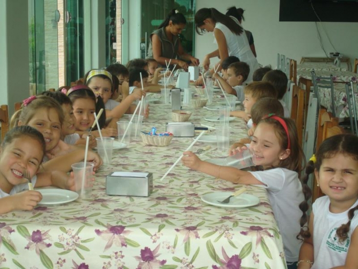 Pizza patrocinada pela Professora Vanessa e sorvete patrocinado pelos pais Raquel e Sabão do aluno Gustavo do Pré II.