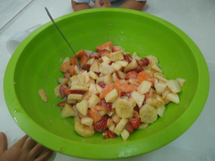 Na segunda feira dia 17/02, a turminha do Maternal teve uma aula pra lá de gostosa! Fizeram uma salada de frutas!!!