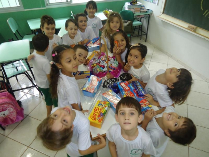 Após um trabalho sobre o tema "Partilha", a Professora Regina, dos alunos do Pré III, tiveram uma iniciativa que foi incentivada por todos os colegas da escola: Fazer a distribuição de chocolates para pessoas idosas da nossa comunidade.