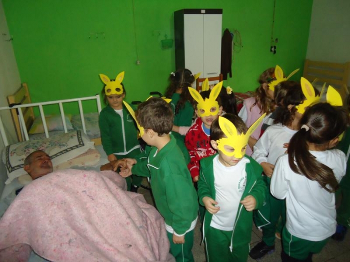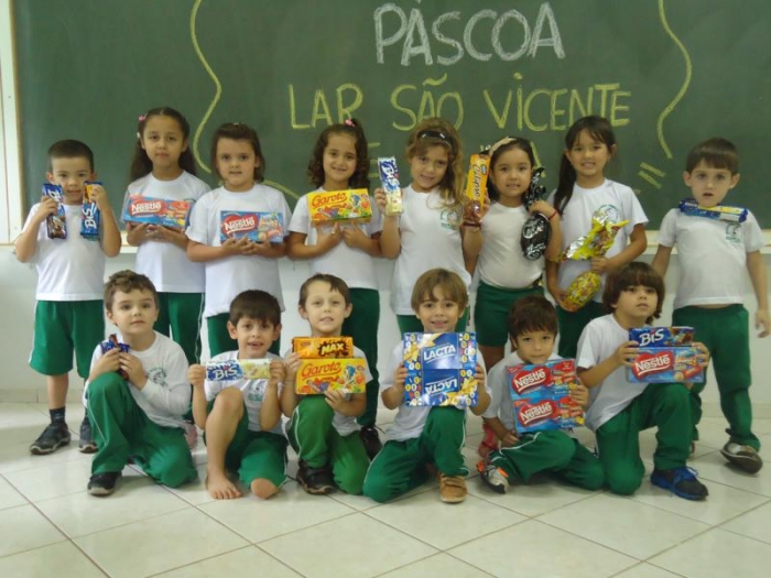 No dia 15/04/14, os alunos e professores visitaram o Lar São Vicente de Paula e fizeram a entrega dos chocolates arrecadados, graças ao apoio das famílias dos alunos.