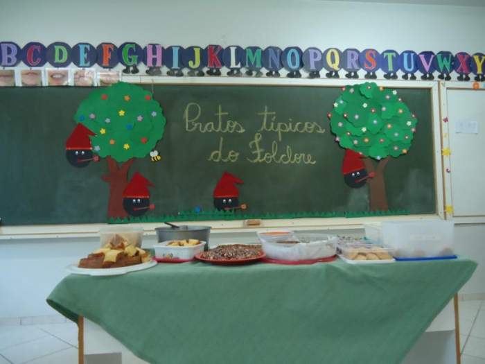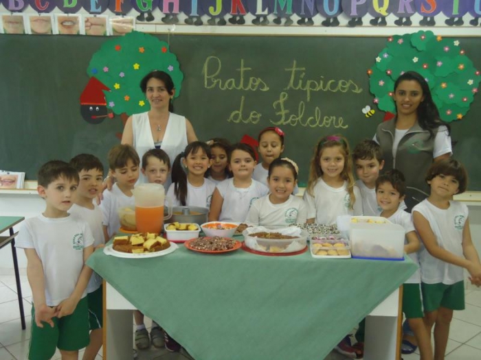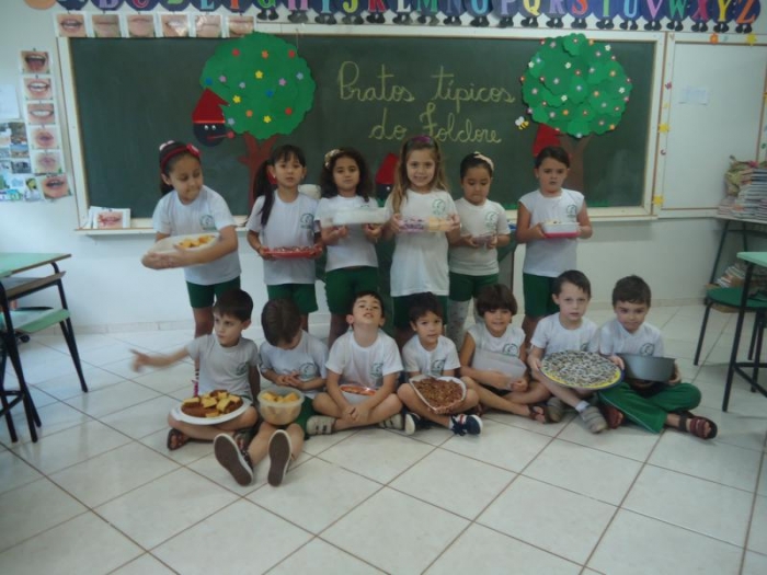 Dentre elas pesquisas de parlendas, trava-línguas, ilustração das lendas mais populares. E encerrando a Semana com o auxilio da família pesquisaram e fizeram um prato típico do Folclore, onde cada um expos seu prato e fizeram a degustação dos mesmo.