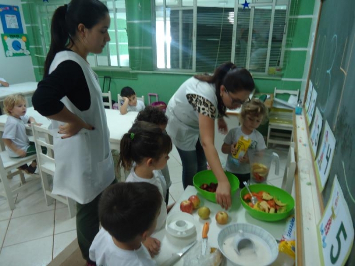 Os Alunos do Pré I e Maternal, juntamente com as professoras Elissa (música) e Meire (arte), trabalharam a música ''Minha Vitamina Tem'', que estimula a criança a conhecer várias frutas mencionadas na canção.