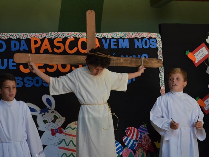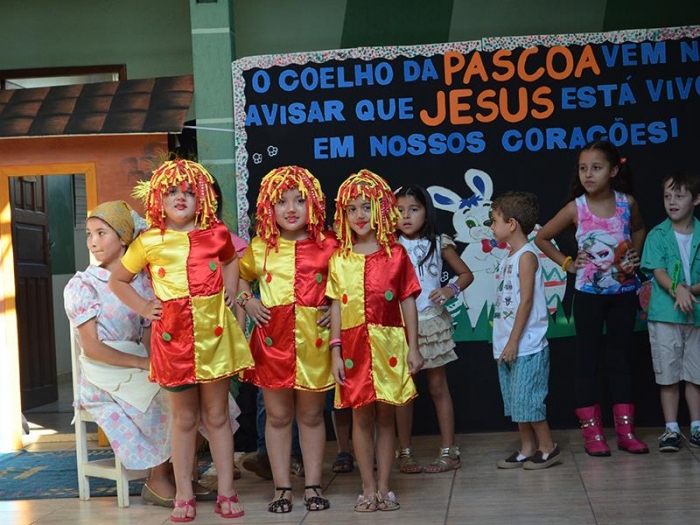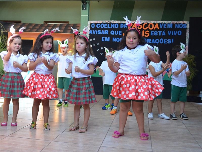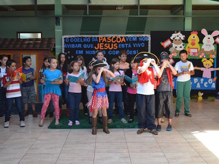 Os alunos fizeram apresentações de três datas importantes do nosso calendário: Dia do Índio, Páscoa e Dia do Livro. São três elementos de estudo que merecem ter destaque no contexto escolar. Contudo, cada família com suas especificidades farão essa celebração conforme sua crença, costume ou tradição.
