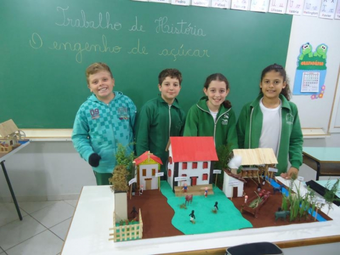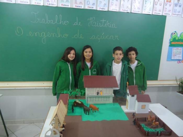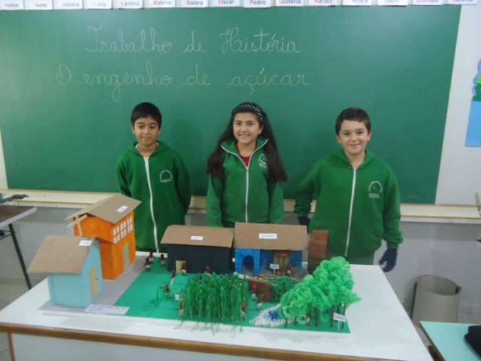 Os alunos do 5º ano, confeccionaram em grupos juntamente com os pais, maquetes representando o Engenho de Açúcar, ou seja, toda a propriedade rural onde era produzido o açúcar. Produção esta que foi, sem dúvida, a atividade econômica mais importante e lucrativa dentre diversas atividades desenvolvidas na América portuguesa.