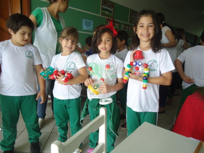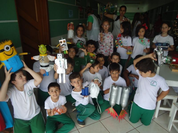 De acordo com as atividades desenvolvidas sobre conscientização e preservação do meio ambiente, os alunos do 2º Ano A e B das professoras Cássia e Ana Cláudia confeccionaram vários tipos de objetos recicláveis.