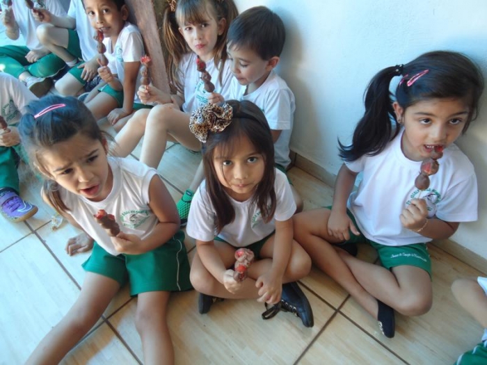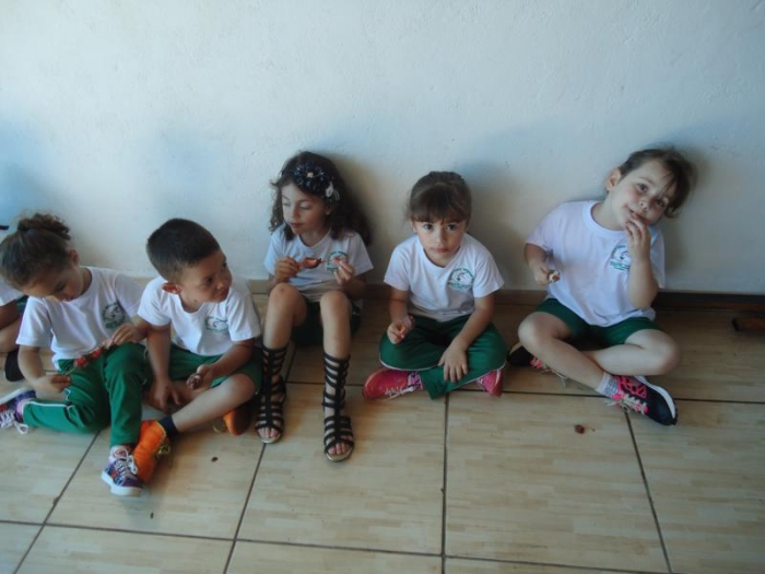 No dia 10 de outubro os alunos do Maternal da professora Nayara, Pré I da professora Jéssica e Pré II da professora Rafaela, realizaram um atividade na área formação pessoal e social com um trabalho de culinária na casa da professora Verônica. O conteúdo trouxe para sala de aula, alguns sabores e o conhecimento e a origem de alguns alimentos através de uma atividade divertida e saborosa.