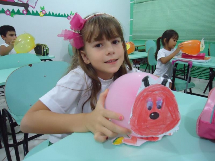 Para conclusão da atividade foi confeccionado uma joaninha através de balões, recorte e pintura.