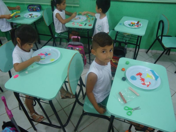 A atividade de hoje é um estimulo as crianças a esculpirem as características físicas de cada membro da família, utilizando massa de modelar, expondo seu trabalho aos colegas e equipe escolar.