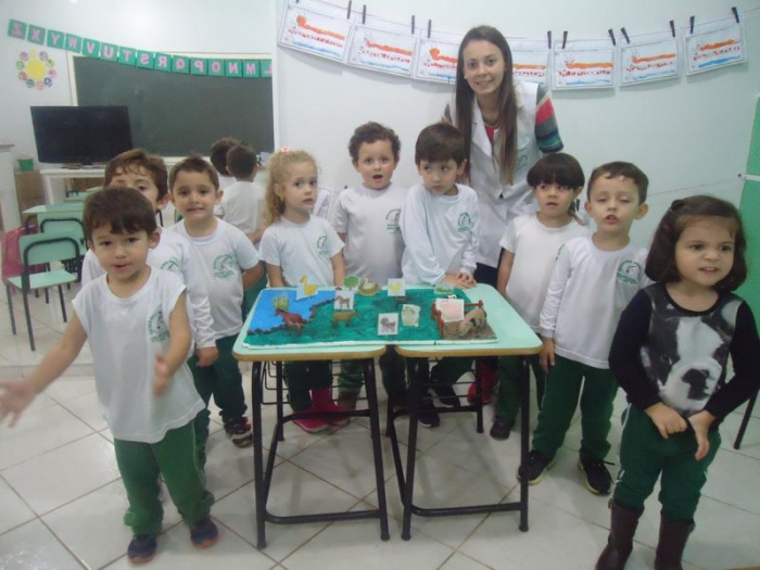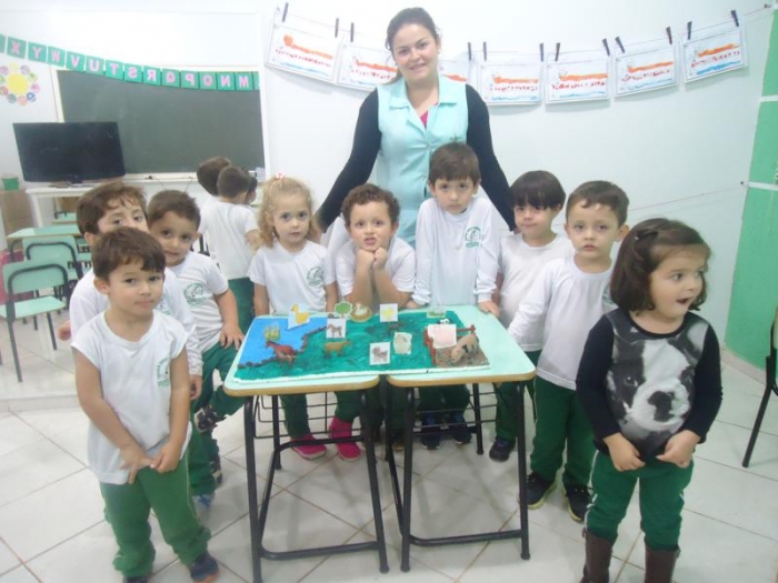 Os alunos do Maternal nas aulas de relações sociais e naturais, conheceram a música "Seu Lobato", trabalhando animais domésticos. Assim as crianças juntamente com a professora Nayara e auxiliar Flávia, confeccionaram uma maquete dos animais que vivem no sítio.