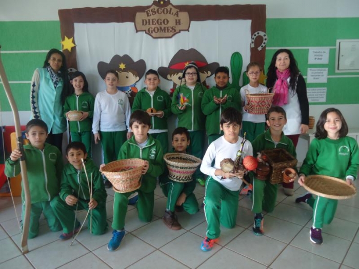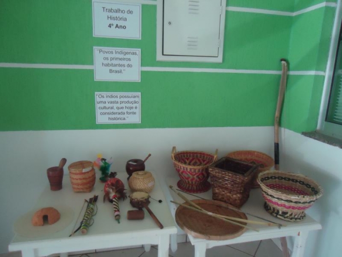 Os alunos do 4º ano realizaram um trabalho na disciplina de História, falando sobre os "Povos Indígenas, os primeiros habitantes do Brasil". Fizeram a exposição oral dos trabalhos e apresentaram objetos indígenas, valorizando sua cultura. Os índios possuíam uma vasta produção cultural, que hoje é considerada fonte histórica.