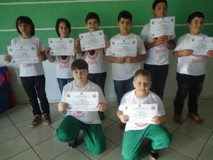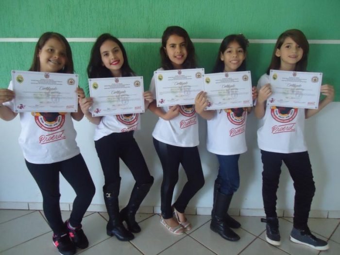 Parabéns aos alunos que se empenharam no desenvolvimento do Proerd. Aos pais, professores e Cabo Elias, pela ação conjunta no sentido de prevenir e reduzir o uso indevido de drogas e a violência entre estudantes, bem como ajudar os estudantes a reconhecerem as pressões e a influência diária para usarem drogas.