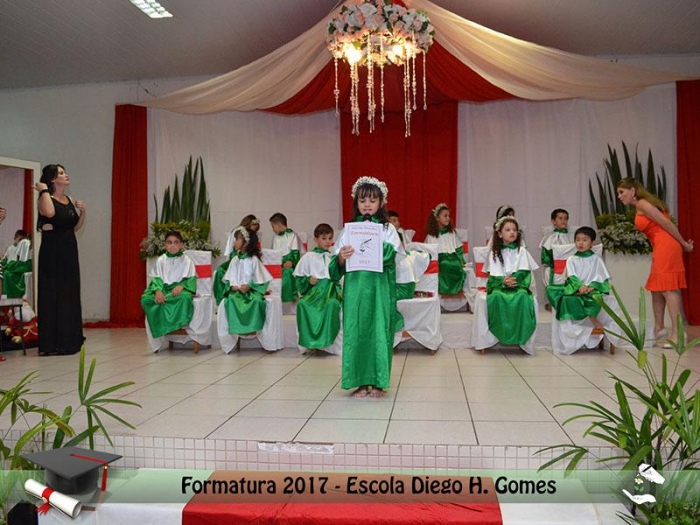Celebramos neste dia 1º de dezembro a solenidade de formatura dos Alunos do 1º Ano da Escola Diego Henrique Gomes - dia de ansiedade, alegria, correria, preocupação e amor contagiante entre formandos, familiares e comunidade escolar. Foi um momento que também elevamos nossa gratidão à Deus, pois foi o início da colheita que Pais e Educadores semearam na vida de vossos filhos, nossos formandos!
