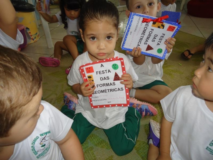 Os alunos do Mini Maternal, sob a orientação e acompanhamento da Professora Vera, organizaram um livro sobre Formas Geométricas. Foi um projeto de grande valia, pois eles manusearam várias formas geométricas, explorando e comparando-as com outros objetos.