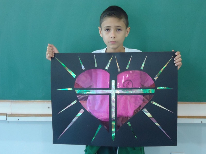 Após conhecer um pouco da história dos vitrais, os alunos iniciaram a confecção de seu próprio vitral.