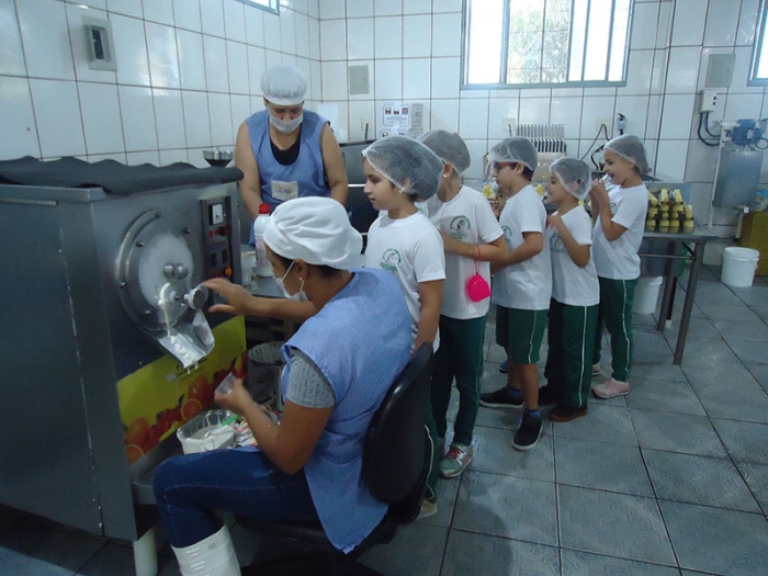 As Professoras Rafaela do 2º Ano e Regina do 3º Ano, ao desenvolver o conteúdo sobre gráficos e tabelas, organizaram uma visita à Fábrica de Sorvetes Califórnia para que conhecessem o processo de fabricação e a partir daí resolver atividades a fim de aplicar os conhecimentos.
