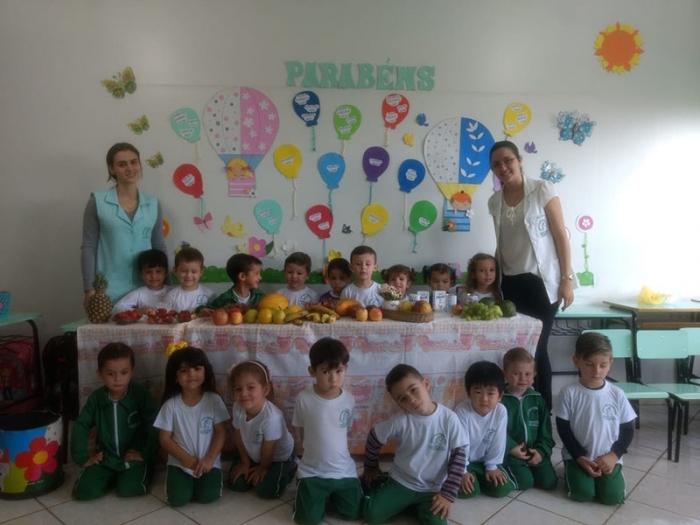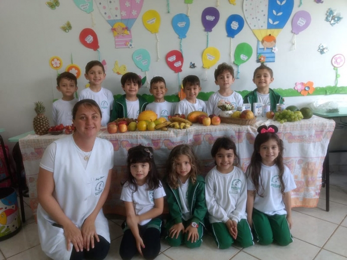 Conseguiram preparar com ajuda dos adultos uma salada de frutas, dividiram com os colegas, saborearam, aprenderam e ensinaram.