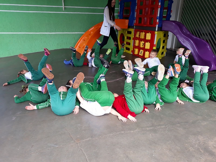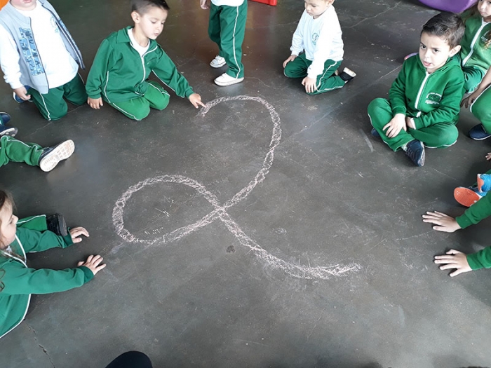 Desta forma, os alunos do Maternal iniciaram o traçado do número dois e sua respectiva quantidade utilizando seu próprio corpo, assim, identificar e contornar o número dois ficou mais divertido!!!