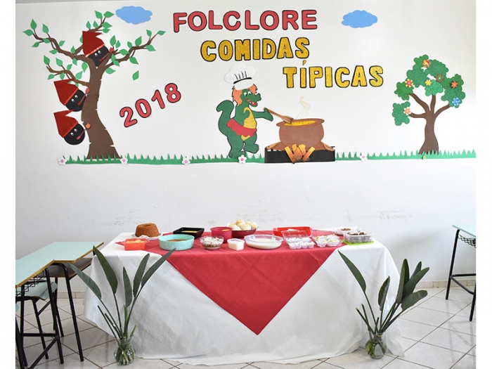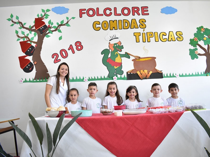 As Professoras Nayara do Pré II e Suzimar do 1º Ano trabalharam a data comemorativa ''Folclore'', com seus alunos, mais especificamente ‘’Comidas Típicas’'. Graças a colaboração dos familiares, seja a Mamãe, Papai ou a Vovó, os alunos produziram um delicioso prato que foi previamente definido e, trouxeram para a sala aula a fim de apresentar para aos demais colegas. Foi uma aula muito interessante!