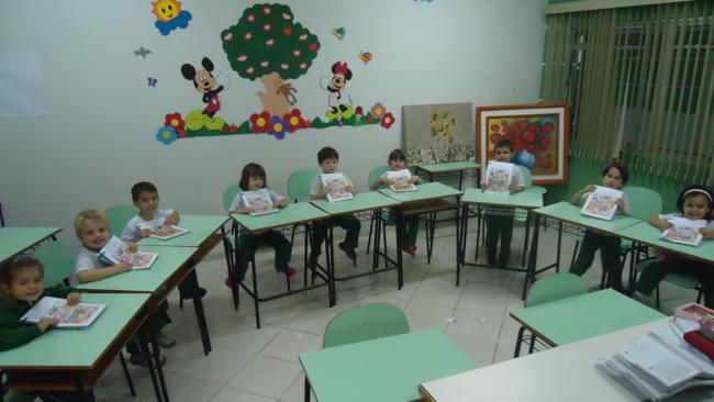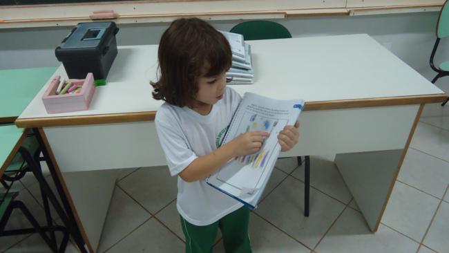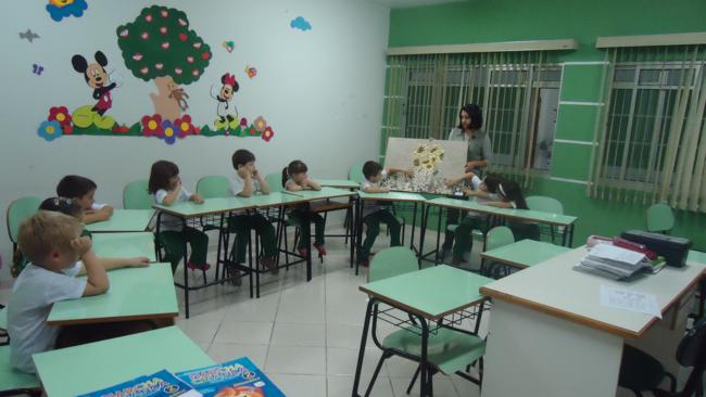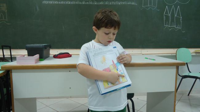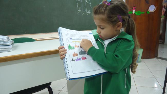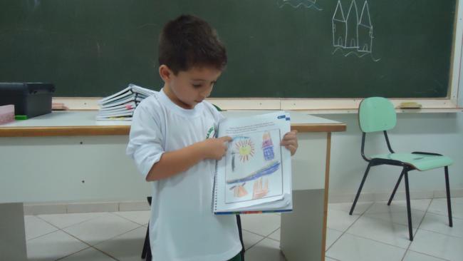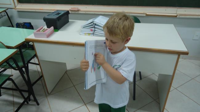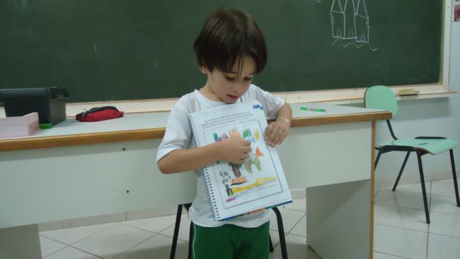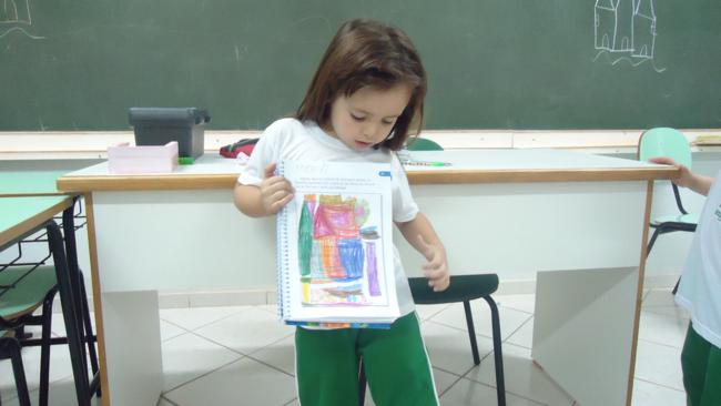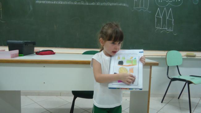 Em atividade de Matemática com o objetivo de identificar formas e cores, percepção visual, descobrir detalhes no ambiente e agrupar objetos de acordo com suas semelhanças, a professora Bete, através da obra de arte da pintora Tarsila de Amaral, a Estrada de Ferro Central do Brasil (1924), trabalhou todos esses conceitos. Os alunos observaram também telas de outros artistas existentes na escola criada por Marcelo, aluno da Apae. Após, cada um fez a releitura da obra de arte com a pintura de Tarsila do Amaral e foram à frente para mostrar e explicar para os colegas suas criações.