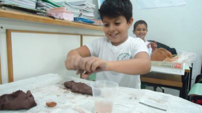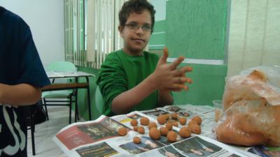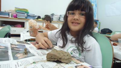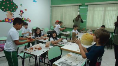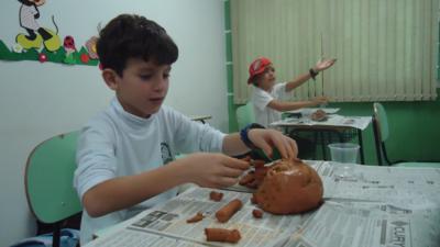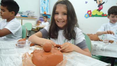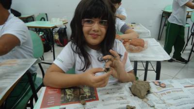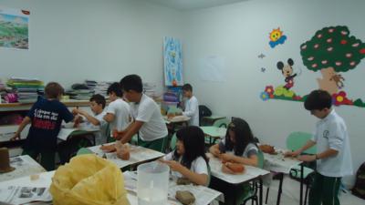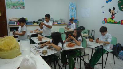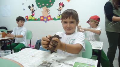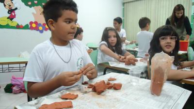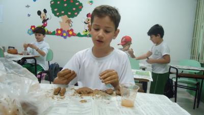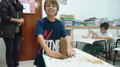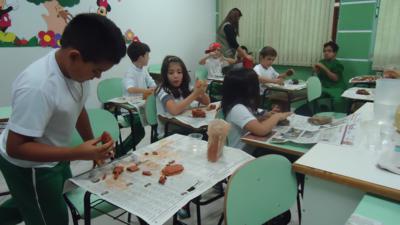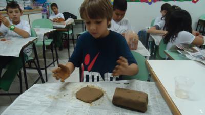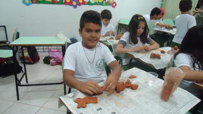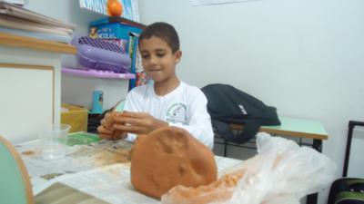 A turma do 3º ano da professora Elaine, na última semana, desenvolveu um trabalho com argila para estudar os diferentes tipos de solo (arenosos, argilosos etc.). Nesta ocasião utilizaram a argila para confecção de pequenas esculturas.