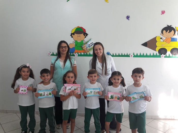 A Professora Vera do Mini Maternal realizou com seus alunos e com os demais alunos da Escola Diego Henrique Gomes, uma atividade de como se Previnir.