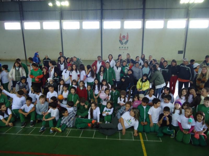 Alunos da Escola Diego e Apae interagem em atividades lúdicas como circuito e brincadeiras em geral