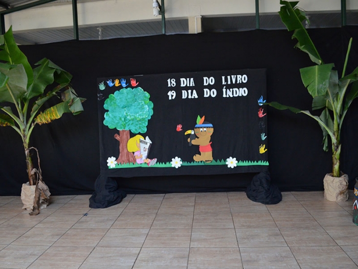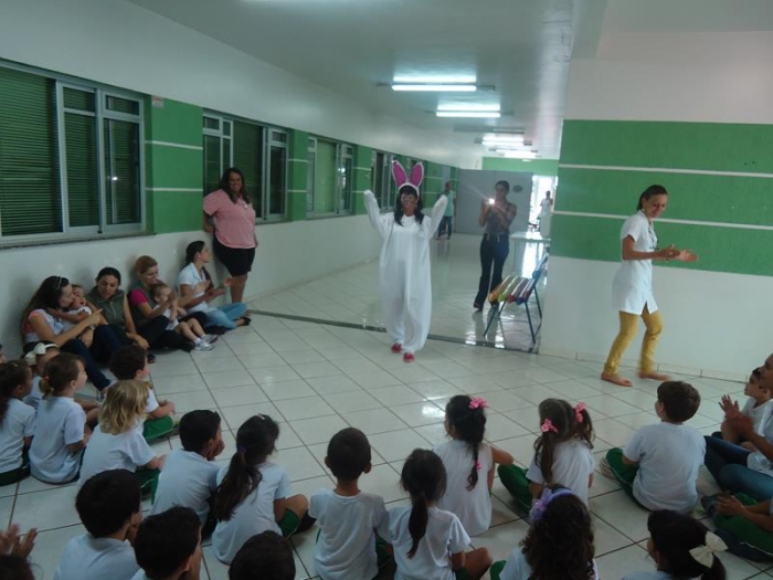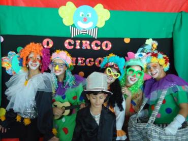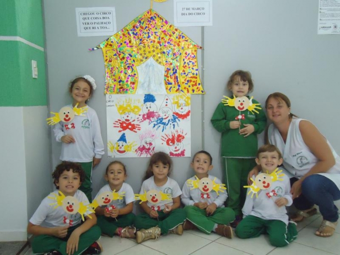 Alunos da Esc. Diego Henrique Gomes participam de uma apresentação em comemoração a semana do circo.