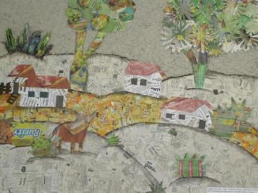 A tela foi reproduzida na aula de Arte com as professoras Meire e Sandra e os alunos do 5º Ano - Desta obra foi selecionada a parte considerada principal da obra: a casa da fazenda e o touro.