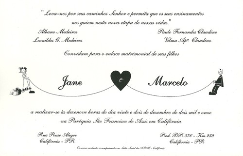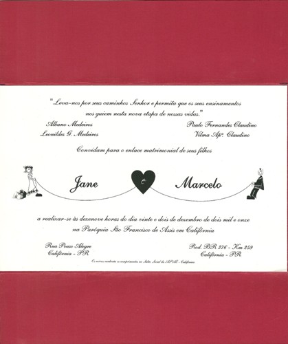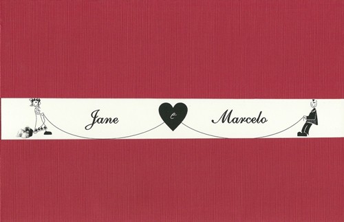 Convite envelope pequim, papel telado 180g. Interior papel couche liso 230g corte reto.