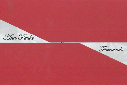 Convite envelope papel Peqquim 180g e convite papel Couche 170g com corte diagonal.